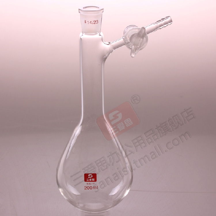 商品:茄形反应瓶200ml/14,标口是14口(14/23),特点:具玻璃节门