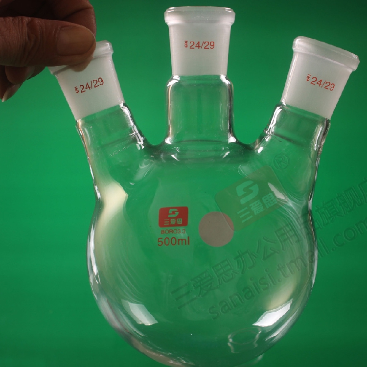 三爱思 三口烧瓶500ml/24*3斜口 耐高温厚壁圆底反应  A03096