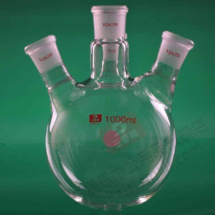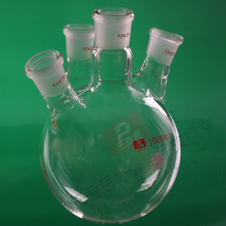 商品:四口烧瓶1000ml/24*4,四个标口都是24口(24/29),1000ml的球体直径约137mm(有误差)。