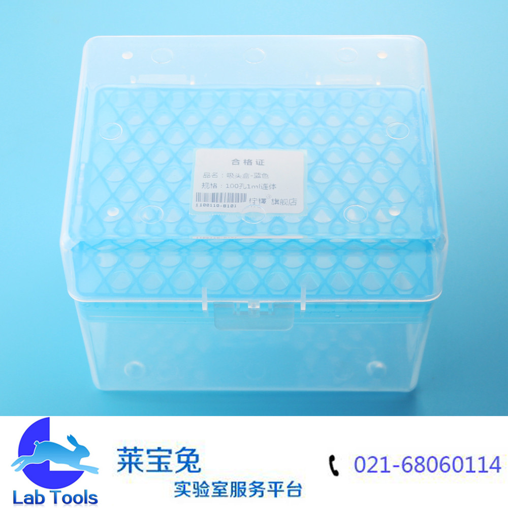 品名:吸头盒 规格:100孔1000ul蓝色连体式 材质:聚丙烯PP