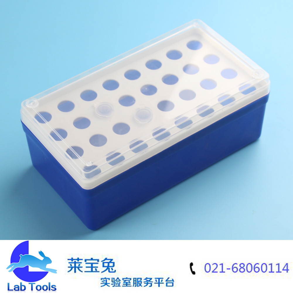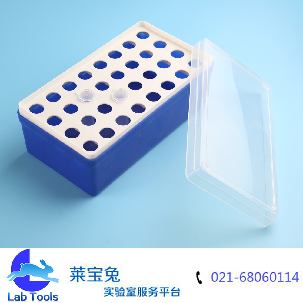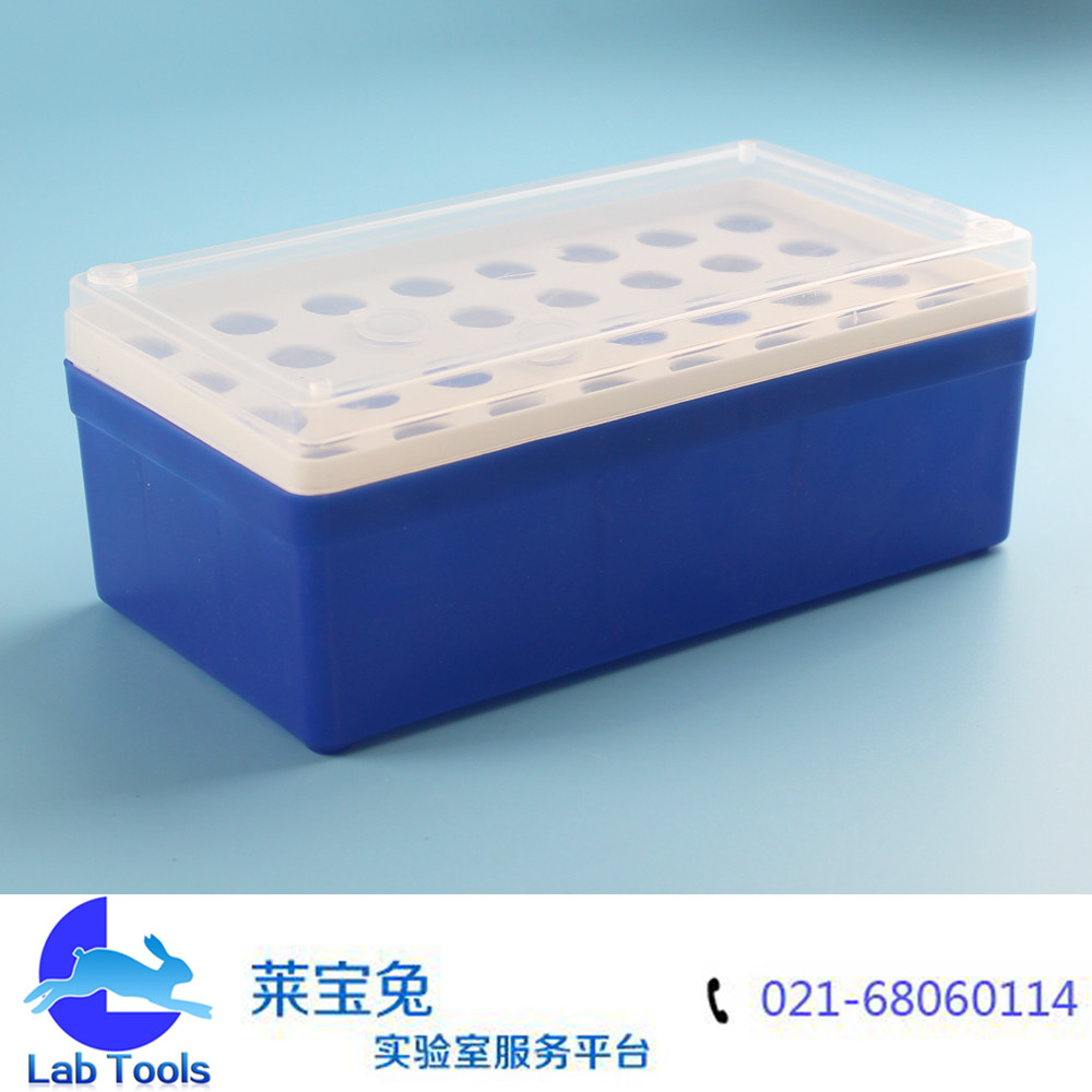 品名:5ml离心管盒32孔 颜色:蓝色 材质:聚丙烯 尺寸:约177*95*72mm,孔径约13.8mm