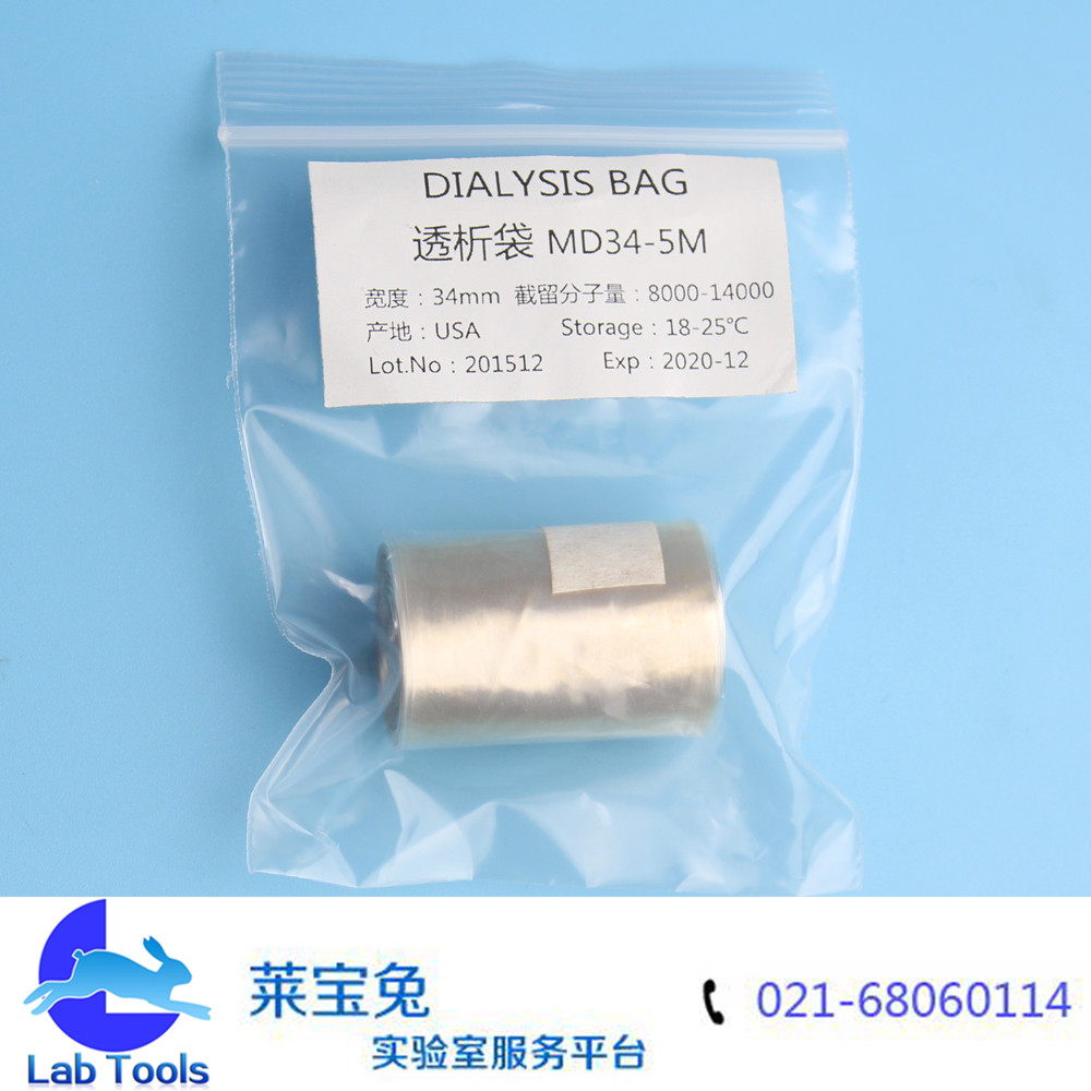 品名 透析袋 规格 8000-14000/34 包装 材质 再生纤维素管式透析袋 颜色 货号 重量 用途 备注说明