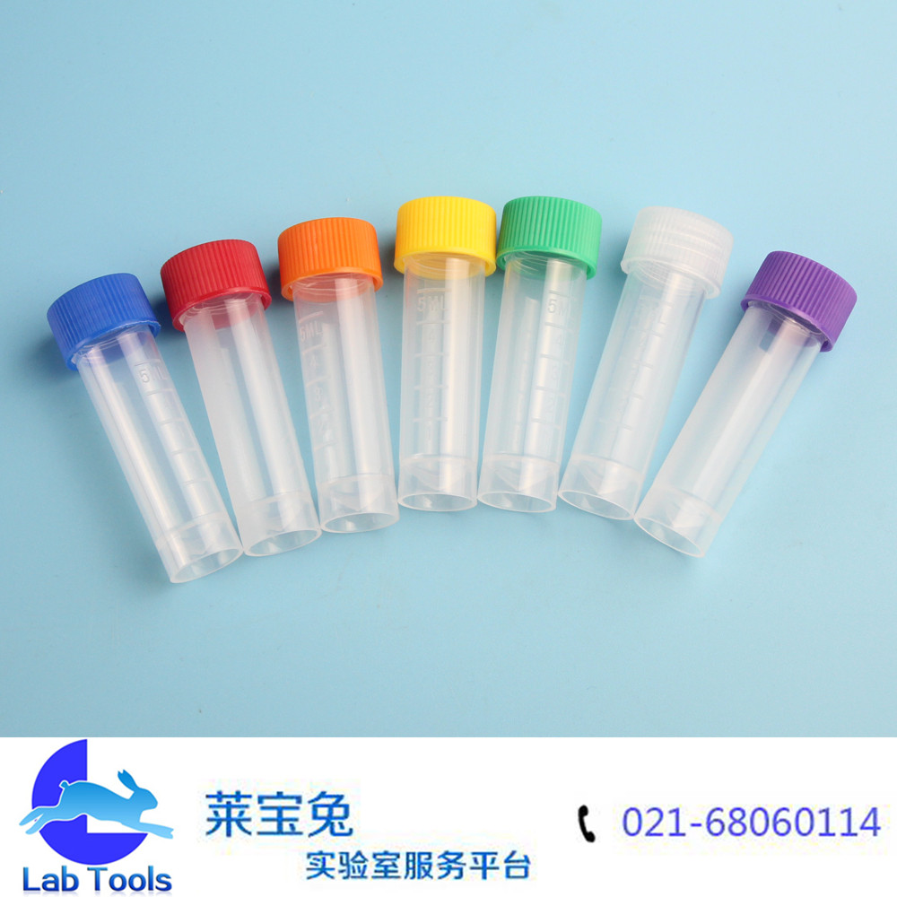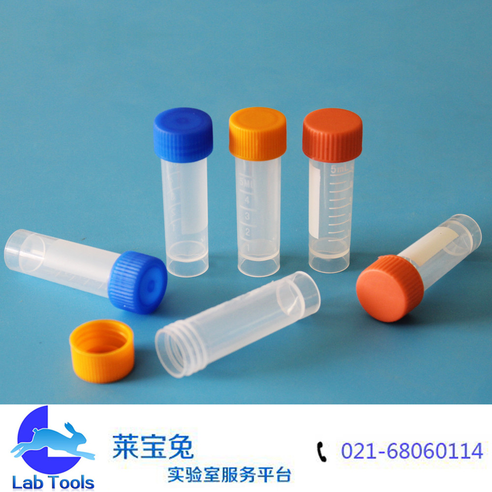 品名 冷冻管(带硅胶垫圈) 规格 5ml 16*59mm 包装 200个/包 材质 全新PP料 颜色 多色(随机) 货号 重量 用途 实验室微量冷冻分析使用 备注说明 硅胶垫圈防漏,带刻度,带磨砂书写面。 可耐冷冻冷藏,管壁经硅化处理,挂壁少,壁厚均匀,透明度高,安全,方便,清洁,美观