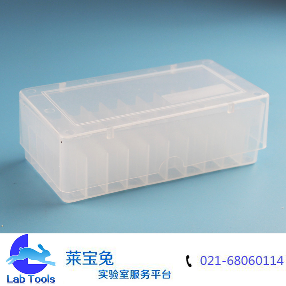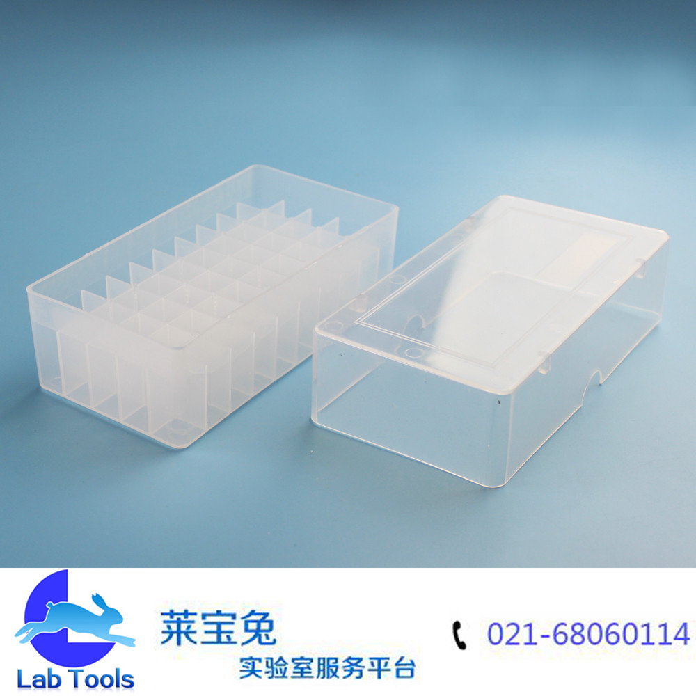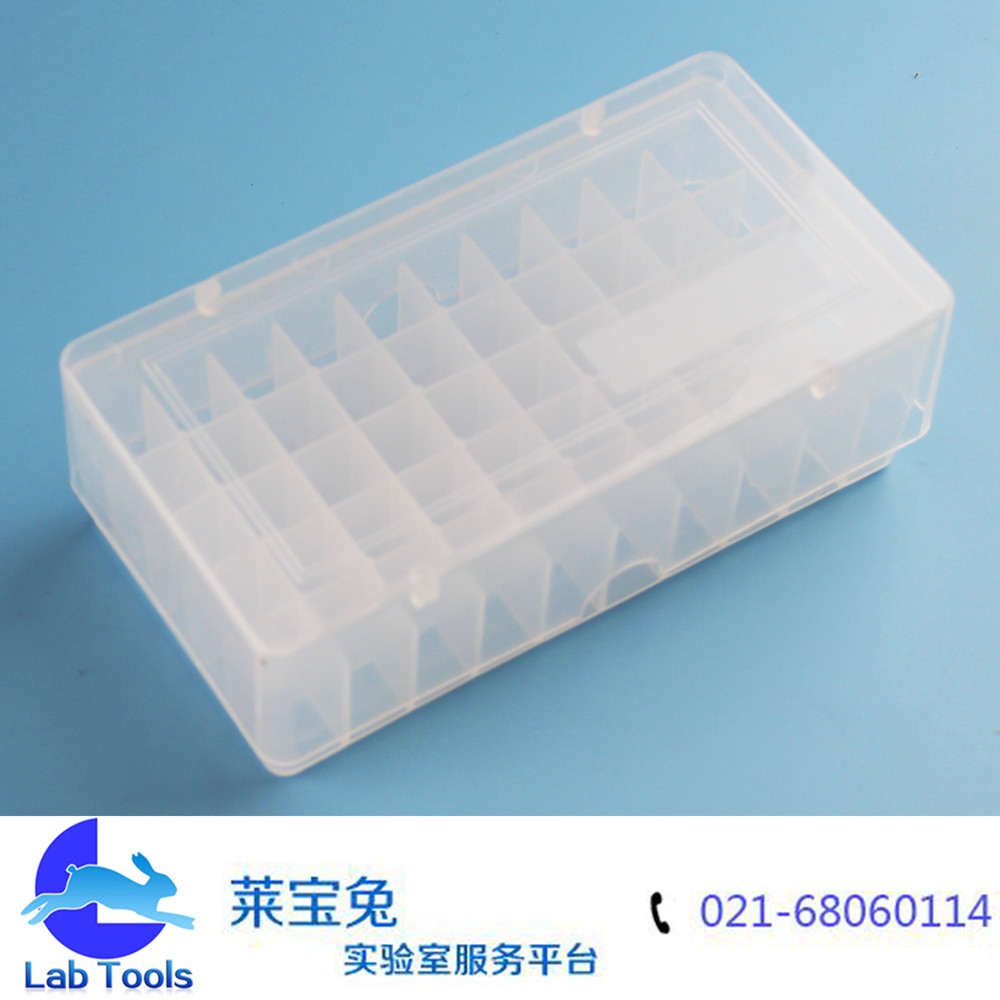品名 塑料冷冻盒 规格 50格 长14.5cm 宽 7.5cm 高 5cm 包装 材质 全新PP料 聚丙烯 颜色 白色 货号 重量 约75克 用途 可放50个1.8ml冷冻管 耐低温 特点 可121度高温高压灭菌,冷却后再使用 超低温冰箱