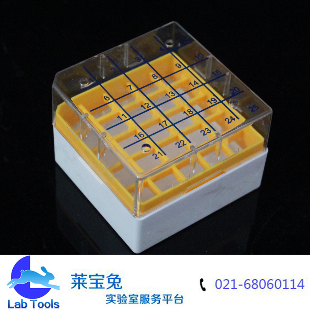 * 25格塑料冷冻盒使用可活动盖子,盖子印有数字网格易于标识样本