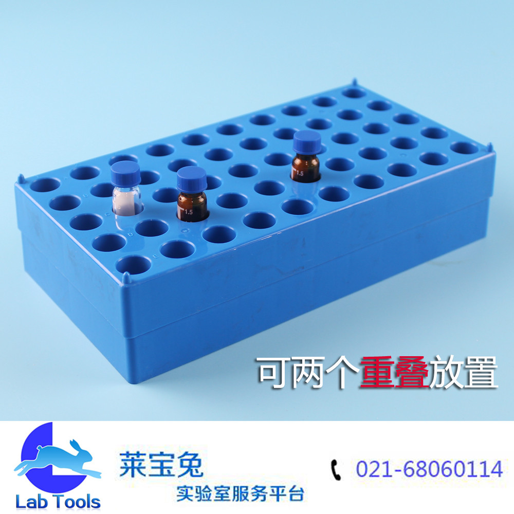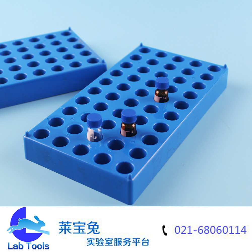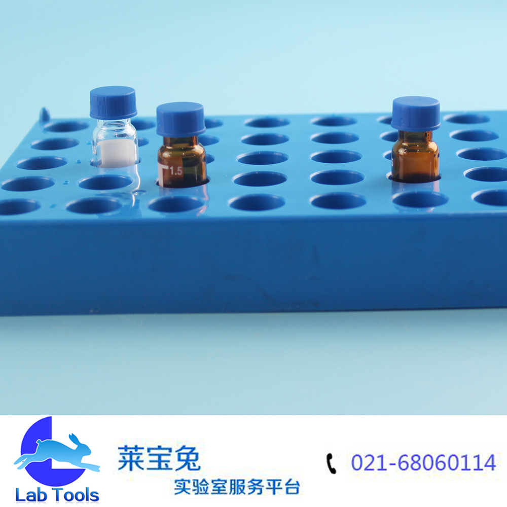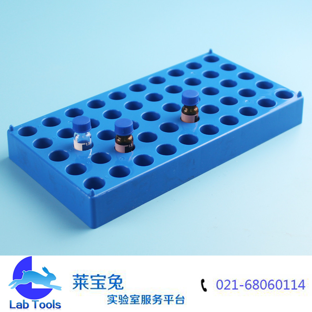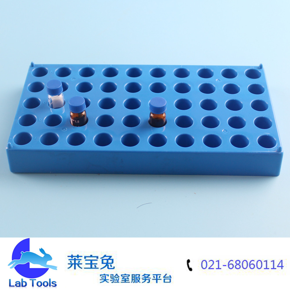 品名:塑料进样瓶架 规格:2ml,50孔(5排10孔) 尺寸:长*宽*高=19*10*2.5cm,孔径12.1mm,深度13mm。