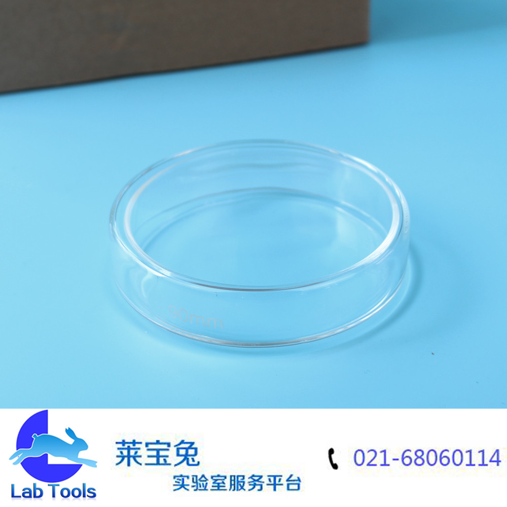品名 玻璃培养皿 规格 90mm 包装 纸盒装 10个/盒 材质 高硼硅3.3 颜色 货号 重量 用途 培养细胞/细菌的生化仪器,可放置培养皿消毒筒高温高压灭菌 尺寸