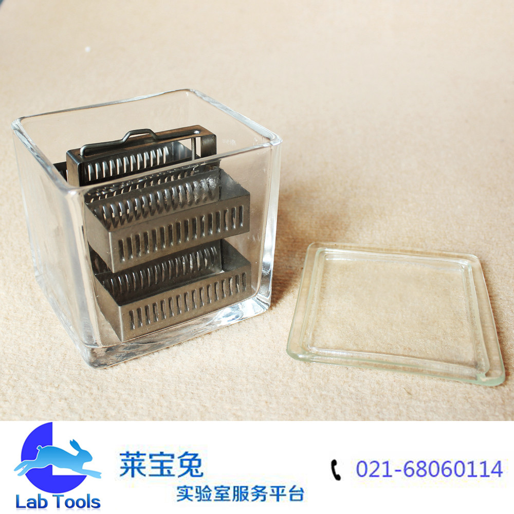 品名 玻璃染色缸 规格 30片 (长宽高)10.4厘米× 9.4厘米× 10厘米 包装 材质 颜色 透明 货号 重量 用途 用于载玻片染色架浸泡不同试剂等等 商品特点 无污染,方便,透明,可重复使用