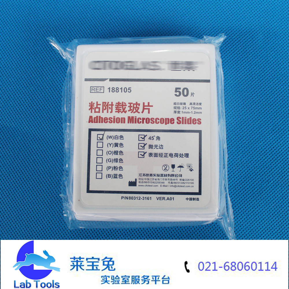品名 粘附载玻片 规格 188105 包装 50片/盒 40盒/箱 材质 超白玻璃 颜色 白色 货号 重量 特点 尺寸说明