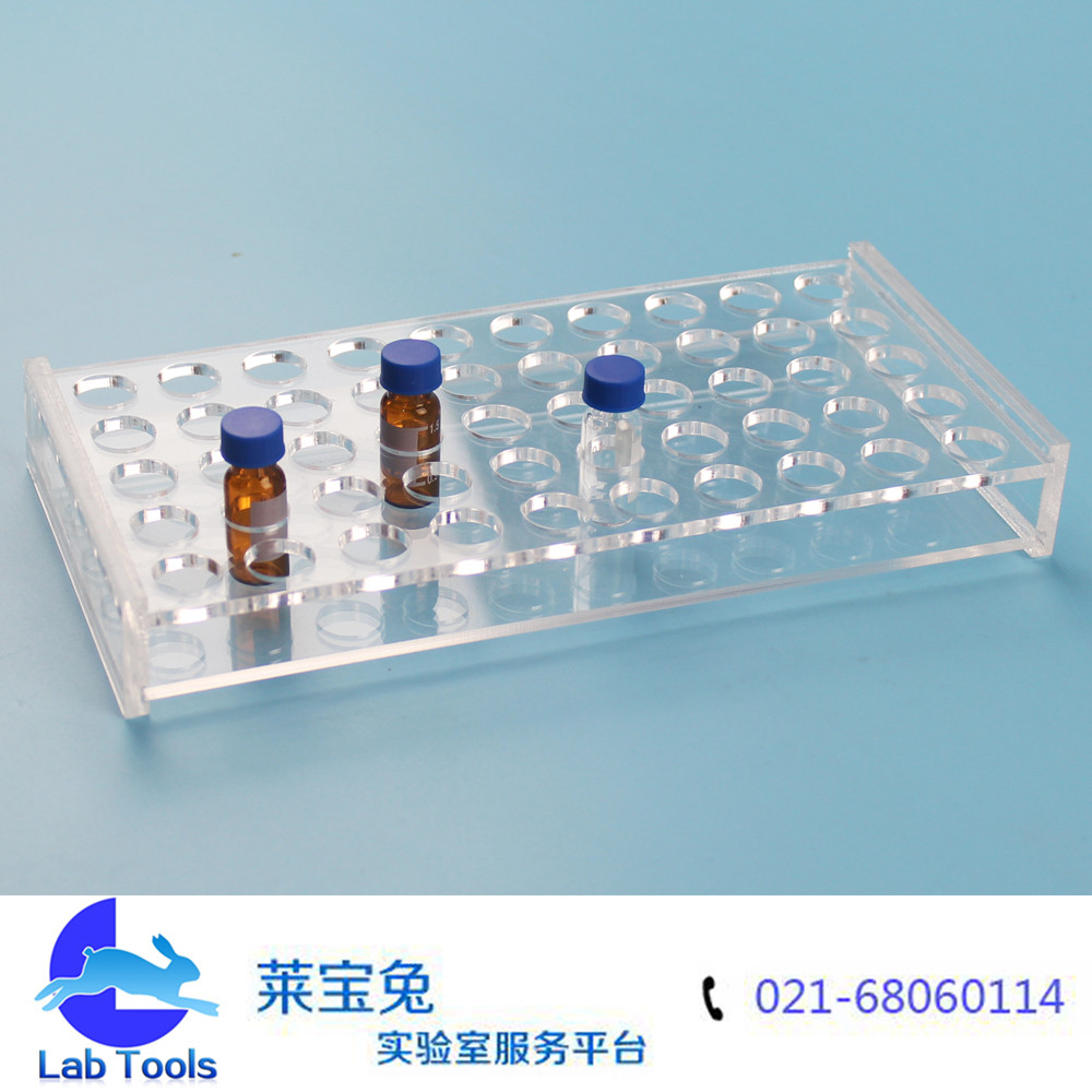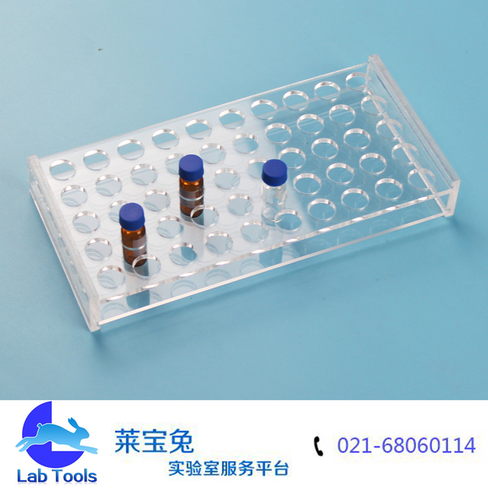品名:进样瓶架/样品瓶架子 材质:透明有机玻璃 规格:50孔/孔径12mm,可放50个2ml进样瓶。 定制服务:可按客户要求定做产品。