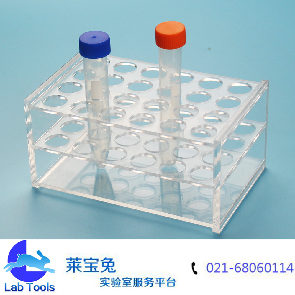 品名:有机离心管架 材质:透明有机玻璃 规格:24孔/孔径17mm,可放24个≤17mm的试管/离心管 定制服务:可按客户要求定做产品。