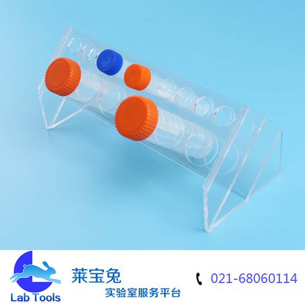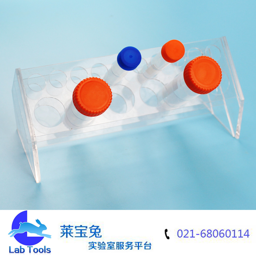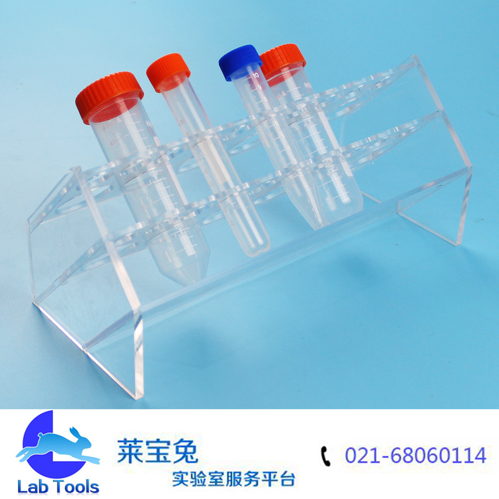 品名:斜型有机离心管架 规格:6孔50ml,10孔15ml(可定做其他孔数) 材质:有机玻璃 孔径:17mm/30mm 特点:斜型设计,多用