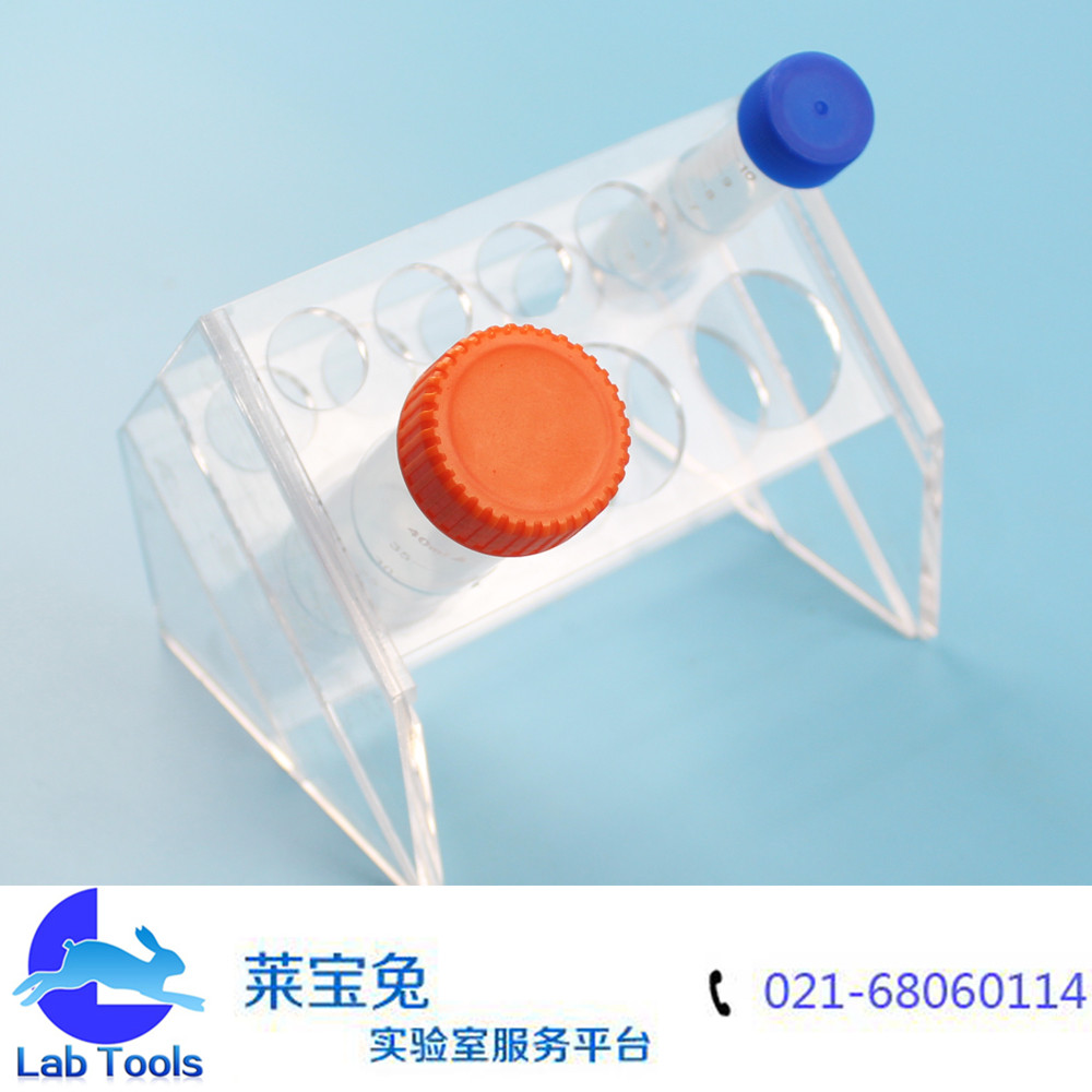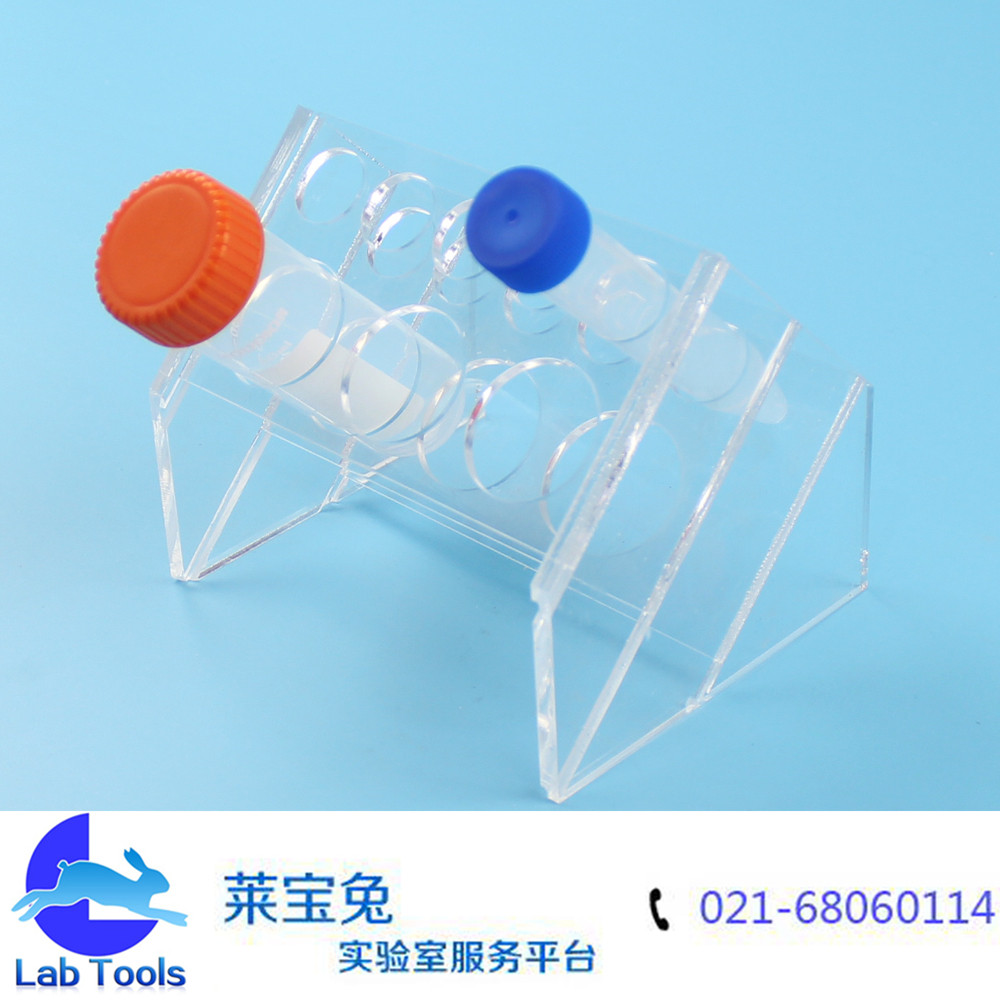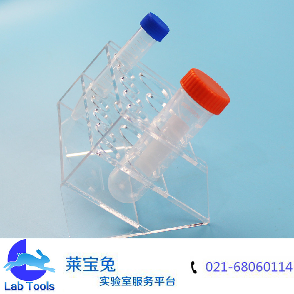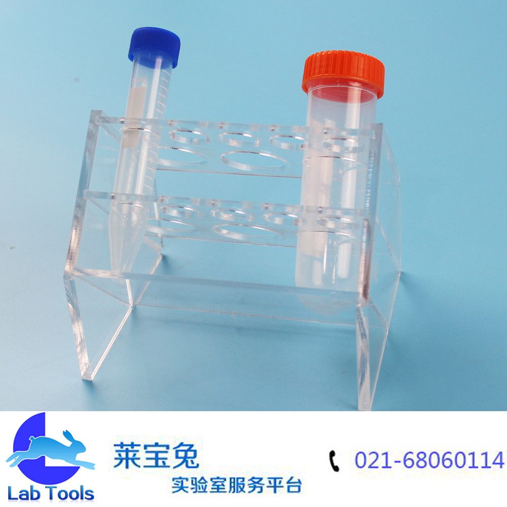 品名:斜型有机离心管架 规格:3孔50ml,5孔15ml(可定做其他孔数) 材质:有机玻璃 孔径:17mm/30mm 特点:斜型设计,多用