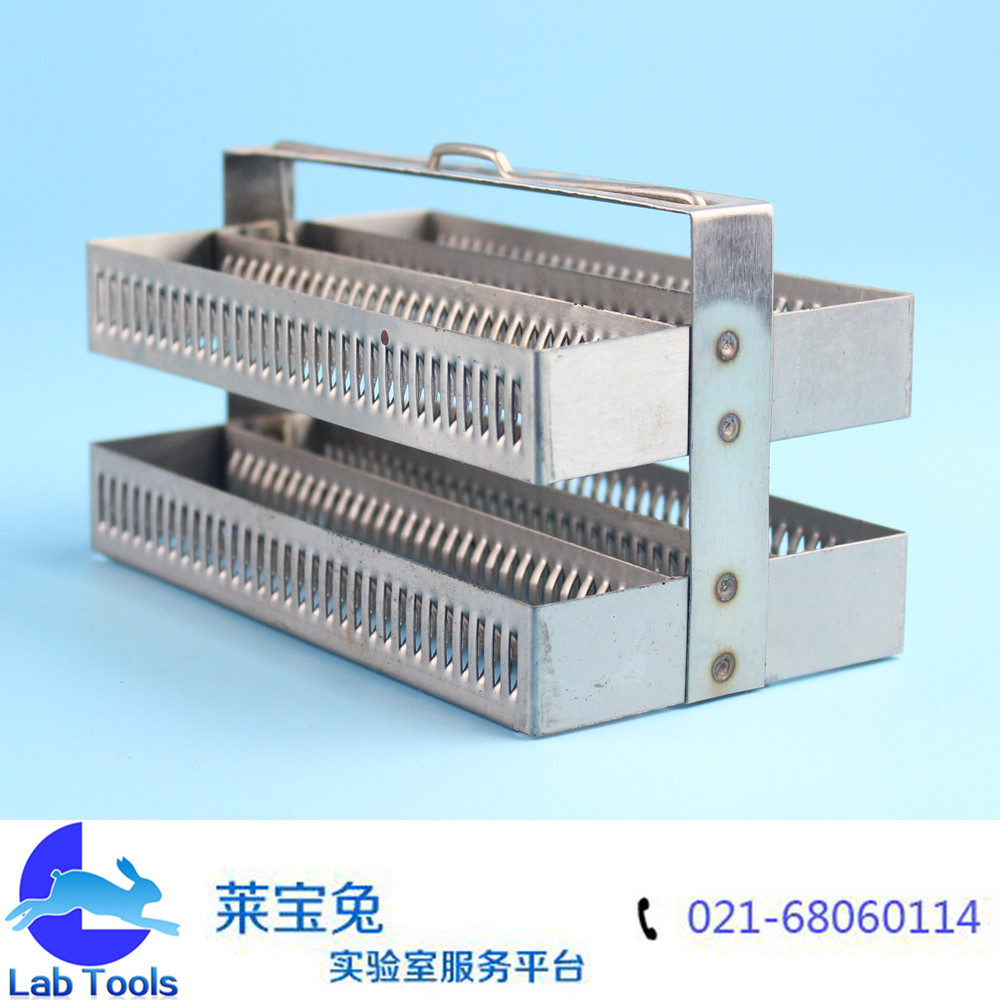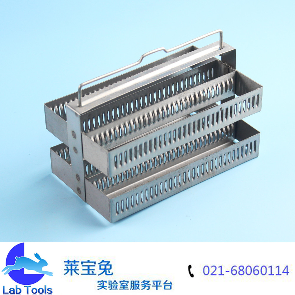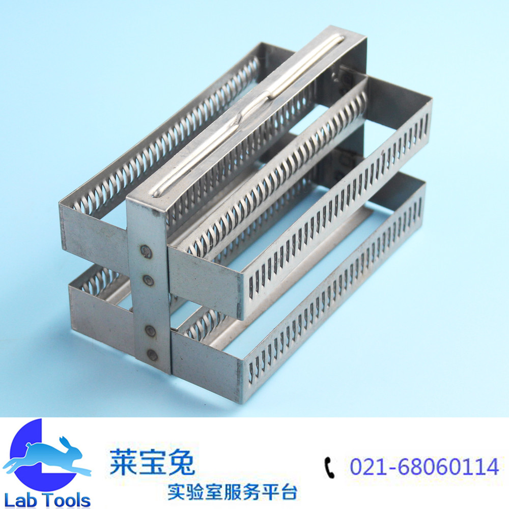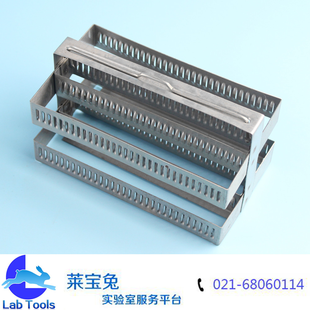 品名 不锈钢染色架 规格 60片 约长131mm,宽75mm,总高90mm 包装 材质 颜色 货号 重量 用途 染色过程中放置60片标准载玻片(25×75mm),可重复使用 备注说明