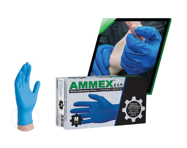 产品名称: AMMEX医用丁腈检查手套 深蓝色|无粉|耐用型